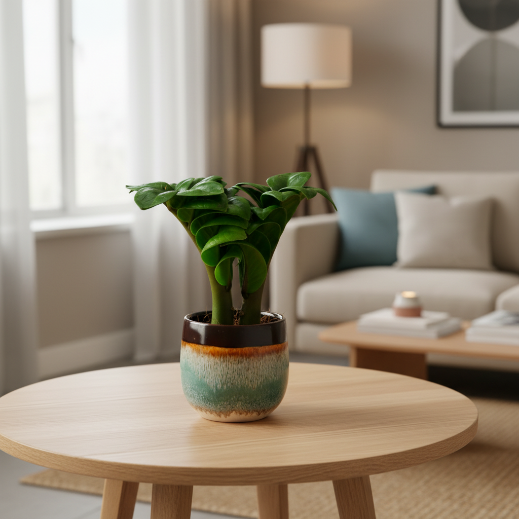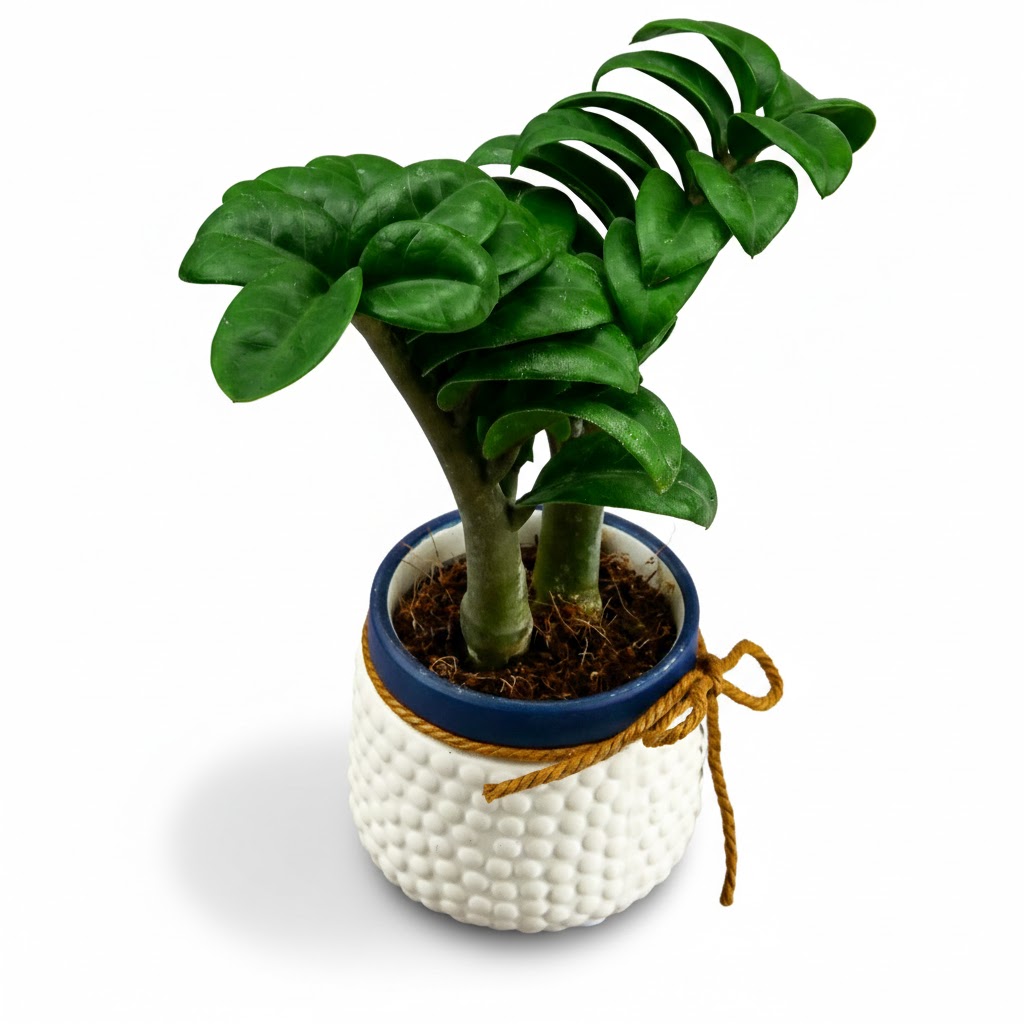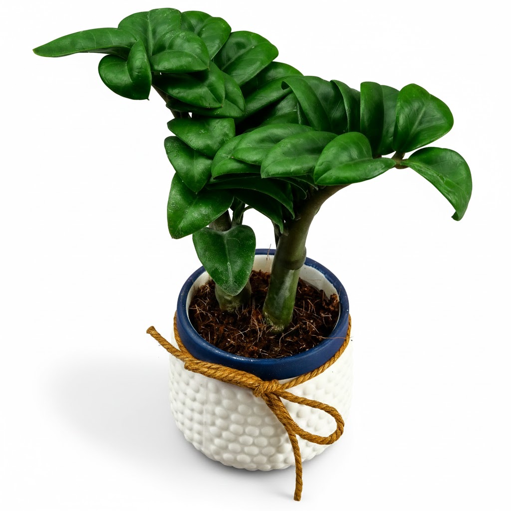W kolekcji takich jak rośliny doniczkowe Zamioculcas jest doceniany ze względu na swoją architektoniczną formę, a wersja ‘Zenzi’ zachowuje stylowy, nowoczesny wygląd w kompaktowych rozmiarach.