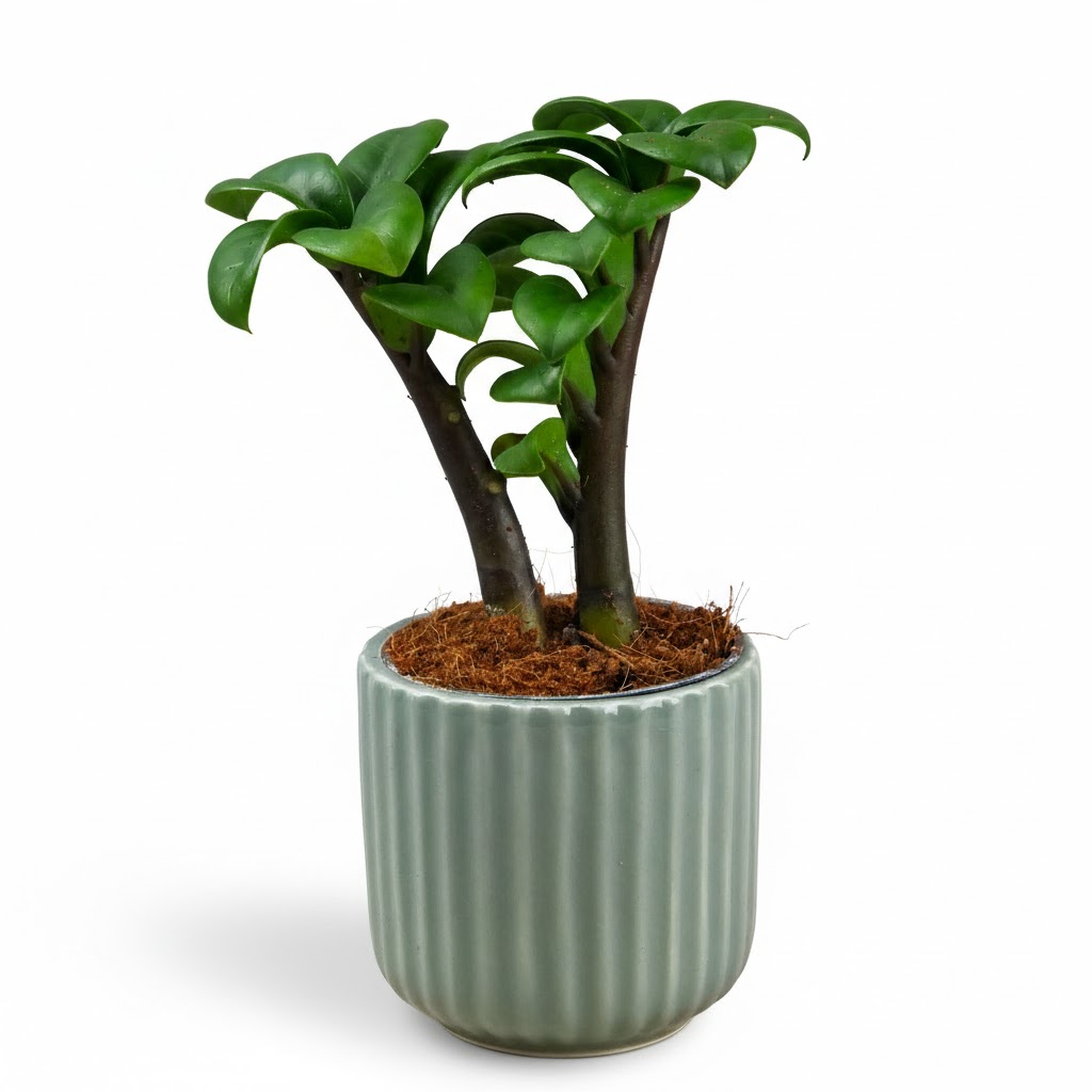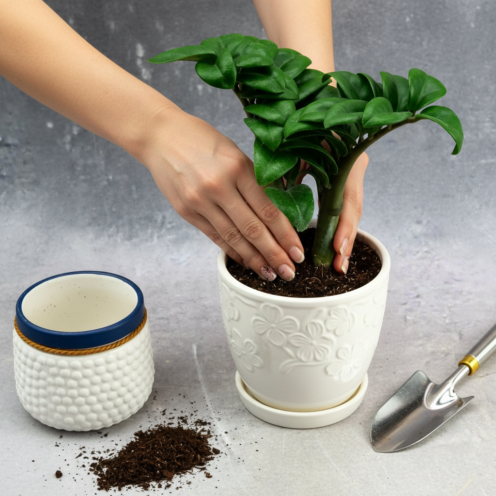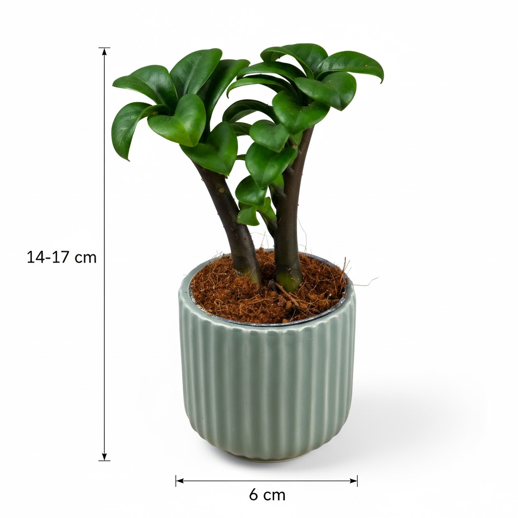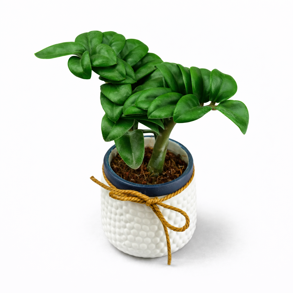 W kolekcji takich jak rośliny doniczkowe Zamioculcas jest doceniany ze względu na swoją architektoniczną formę, a wersja ‘Zenzi’ zachowuje stylowy, nowoczesny wygląd w kompaktowych rozmiarach.